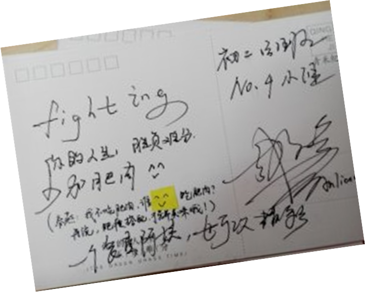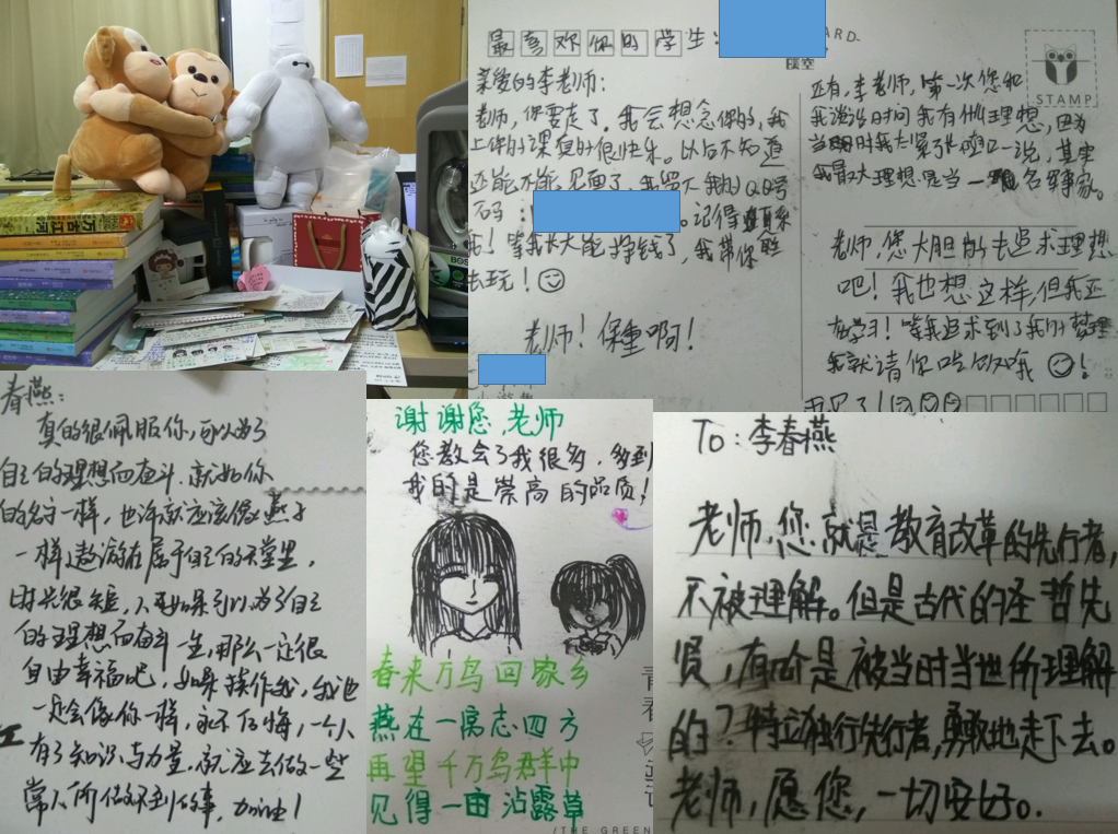 在职时,每一个教过的学生至少获得一张老师手写的卡片;