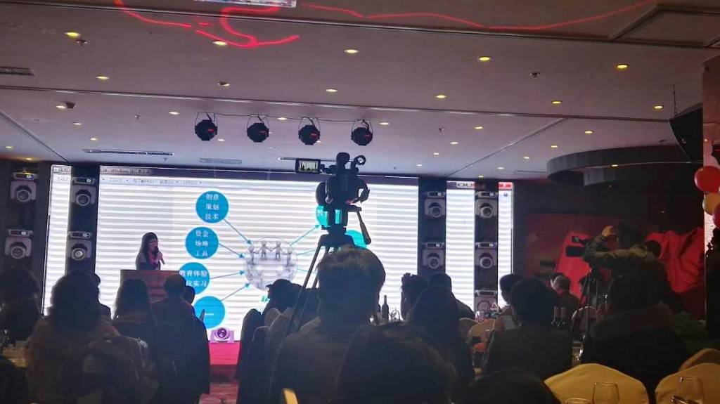 图为参加北京校友会时的演讲,遇到了好几位关心、支持教育的校友