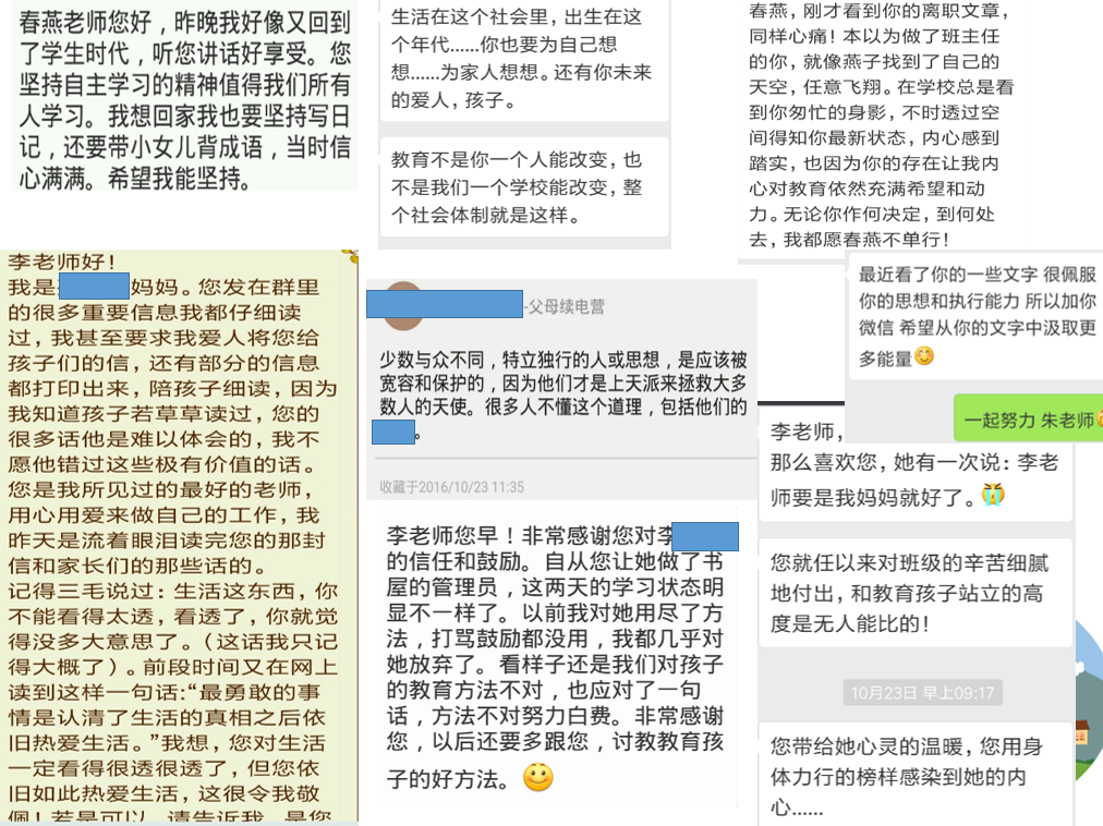 图为部分家长和同事的留言,有的好言规劝、有的充满理解和支持