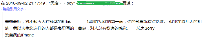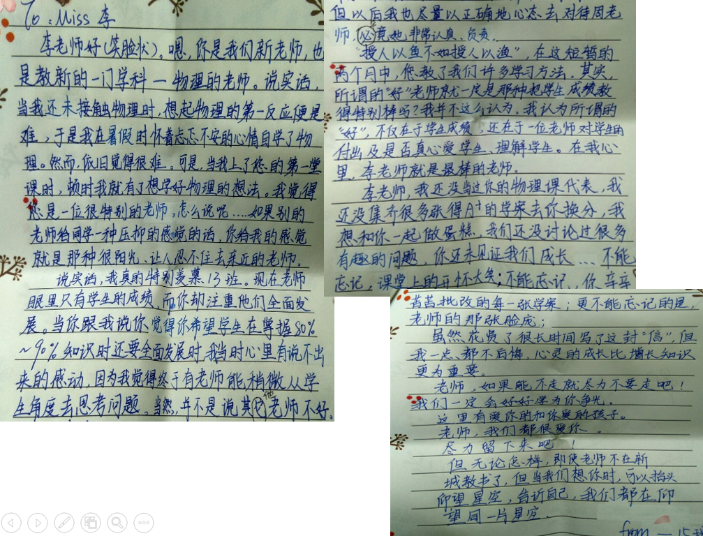 图是放不完的,但是这个孩子用心写的一封信(涉及评价别的老师的部分被删了),我特别想在本篇留作纪念,不是要炫耀师生的感情,而是她让我们看到孩子们心里真正想要的是什么样的教育!他们认为心灵的成长非常重要