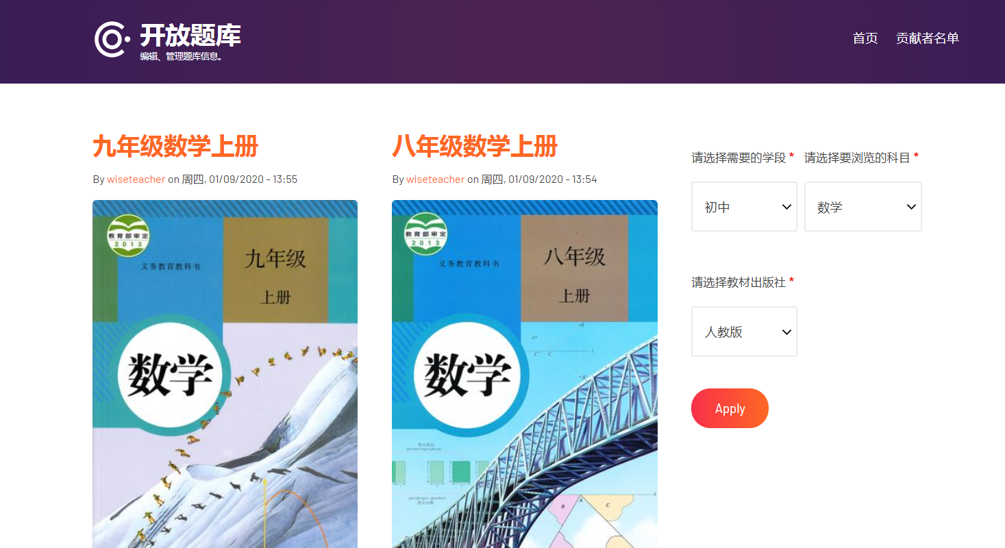 到目前为止我们已经已经上传了关于中学数学部分题目(目前已经完成的部分有中考数学一次函数、二次函数、反比例函数、图形的变化等章节)。当然,对于一个开放的题库而言,这些题量还只是“小菜一碟”,所以接下来我们会继续上传经典的题目来丰富我们的内容。期待通过我们的努力能给大家的教学工作带来便利。