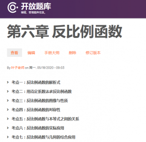 大家好,本周我们跟大家介绍我们开放题库中考数学的反比例函数板块已经整理并上传至本网站的题目,欢迎各位教师同仁的阅读和使用,也欢迎大家提出宝贵的建议,让我们可以把题库建设得更好。